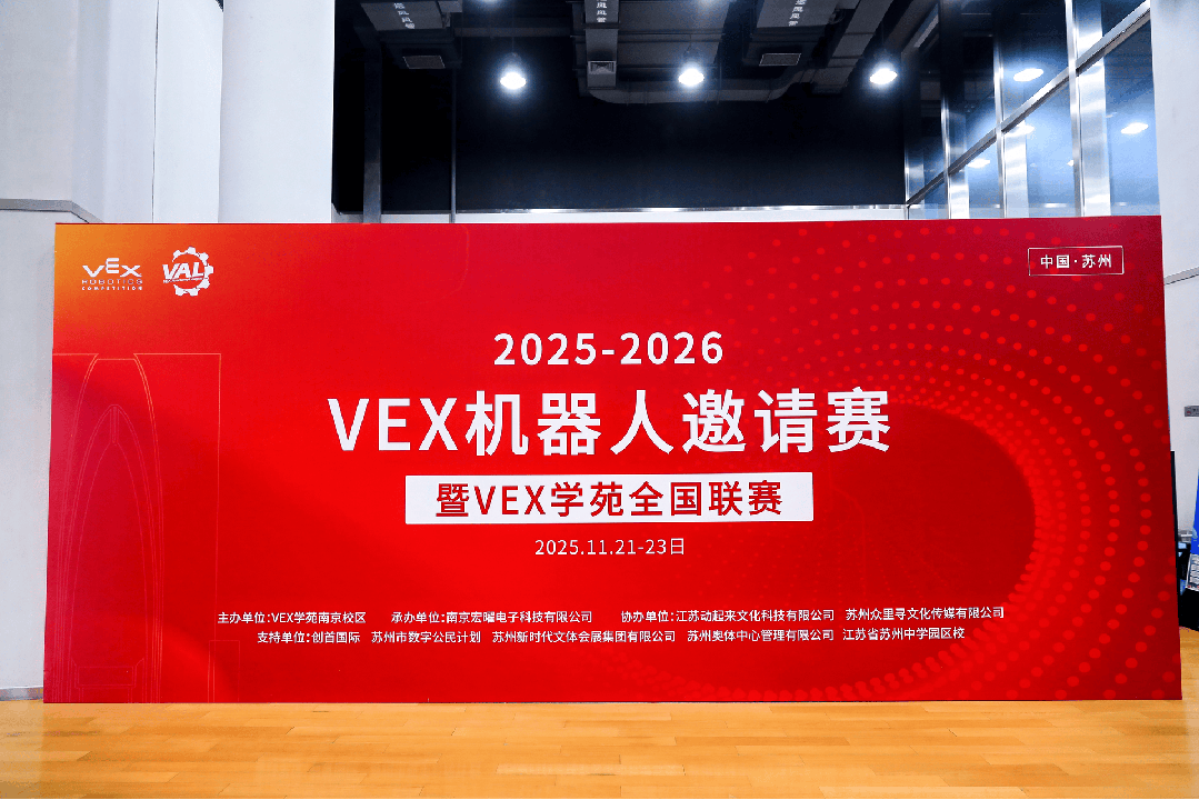 11月21日至23日,2025-2026 VEX 机器人邀请赛暨 VEX 学苑全国联赛(苏州)在苏州奥林匹克体育中心足篮中心盛大举行。包括来自 VEX 学苑南京校区、苏州校区、广州校区、丹阳校区的20支赛队在内的共计200余支赛队近700名选手齐聚一堂,在挑战中展现自我,在协作中共同成长,为我们奉献了一场高水平的科技竞技盛宴,为初冬的苏州增添了独样魅力。