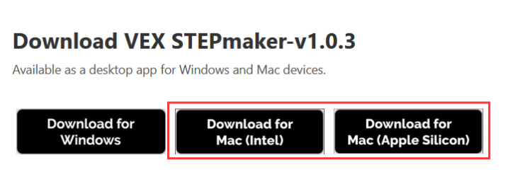 Before installing VEX STEPmaker, you need to download and install FreeCAD 0.21.2. To install VEX STEPmaker and FreeCAD on a Mac computer, first determine and download the appropriate installer for your system. Follow these steps to identify the correct installer and install VEX STEPmaker and FreeCAD on your macOS device.