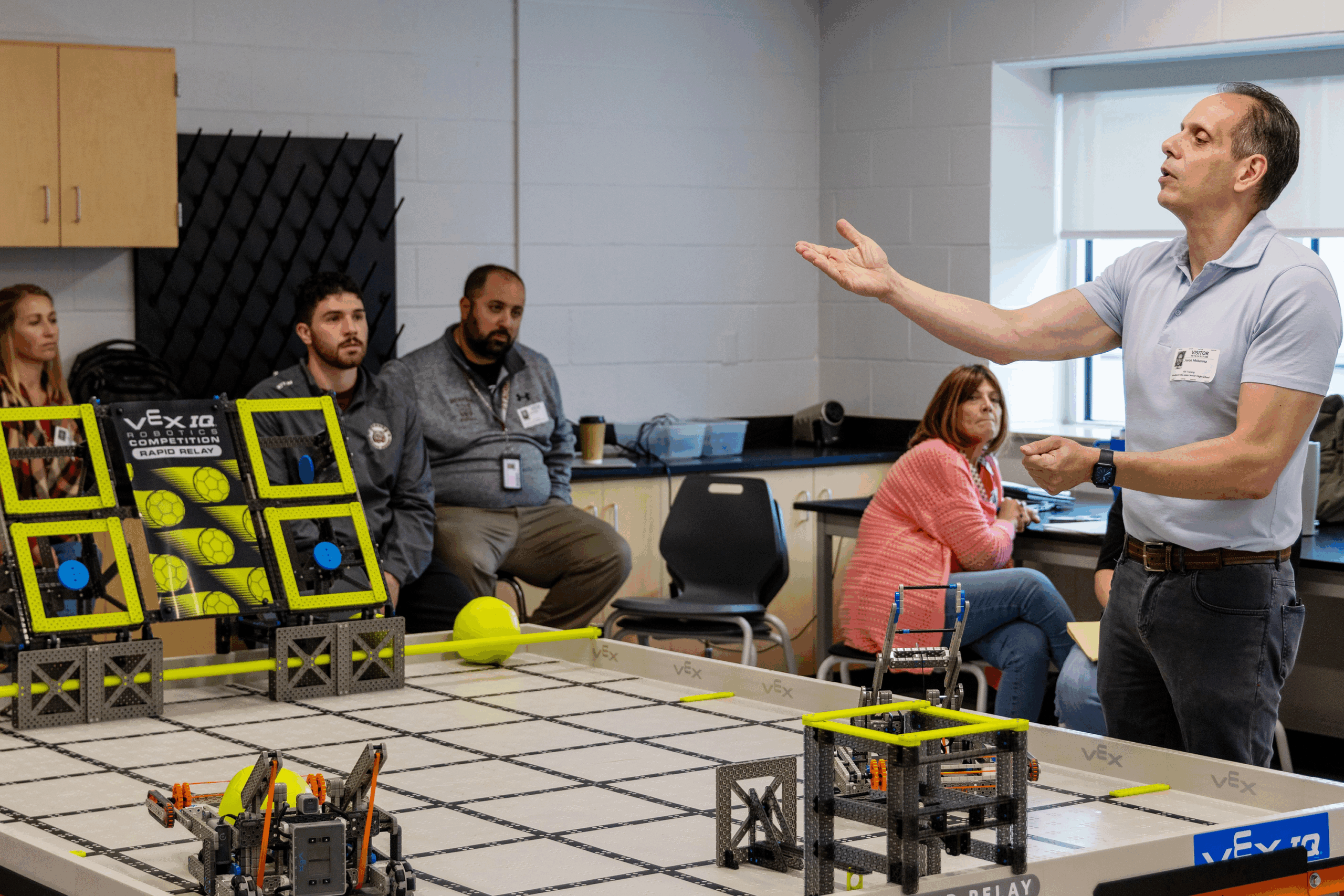 VEXcode IQ 帮助不同阶段学生感受机器人科学和计算机科学的魅力。有三种方式可选:图形化,Python 和 C++ 编程。