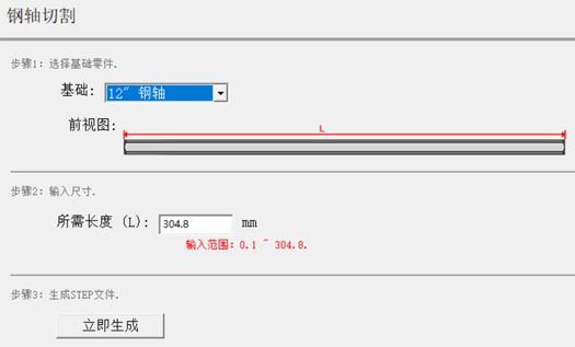 1.1 通过下拉框选择钢轴“基础”参数:12″钢轴、12″高强度轴、12″钉轴。实时查看前视图。
